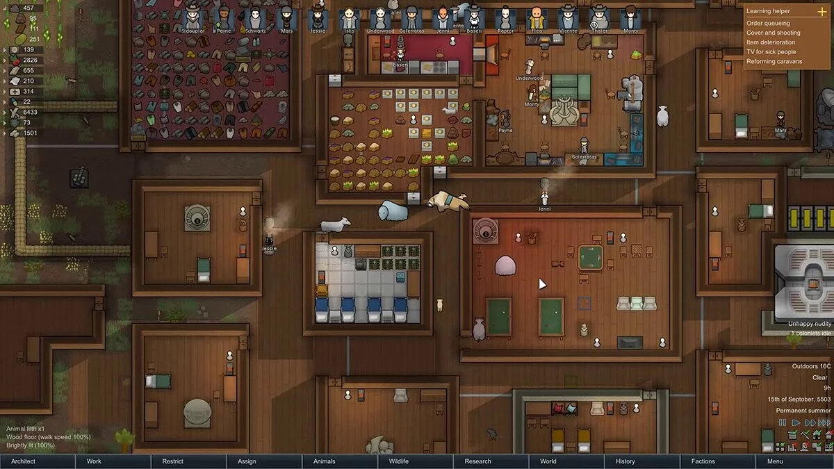 Модификация убирает необходимость вручную заниматься охотой, добычей древесины и разведением скота. Все эти процессы станут автоматическими, вам останется лишь выбрать колонистов и указать им цель. Помимо этого, у вас появится возможность задавать приоритеты у колонистов на те или иные задания.