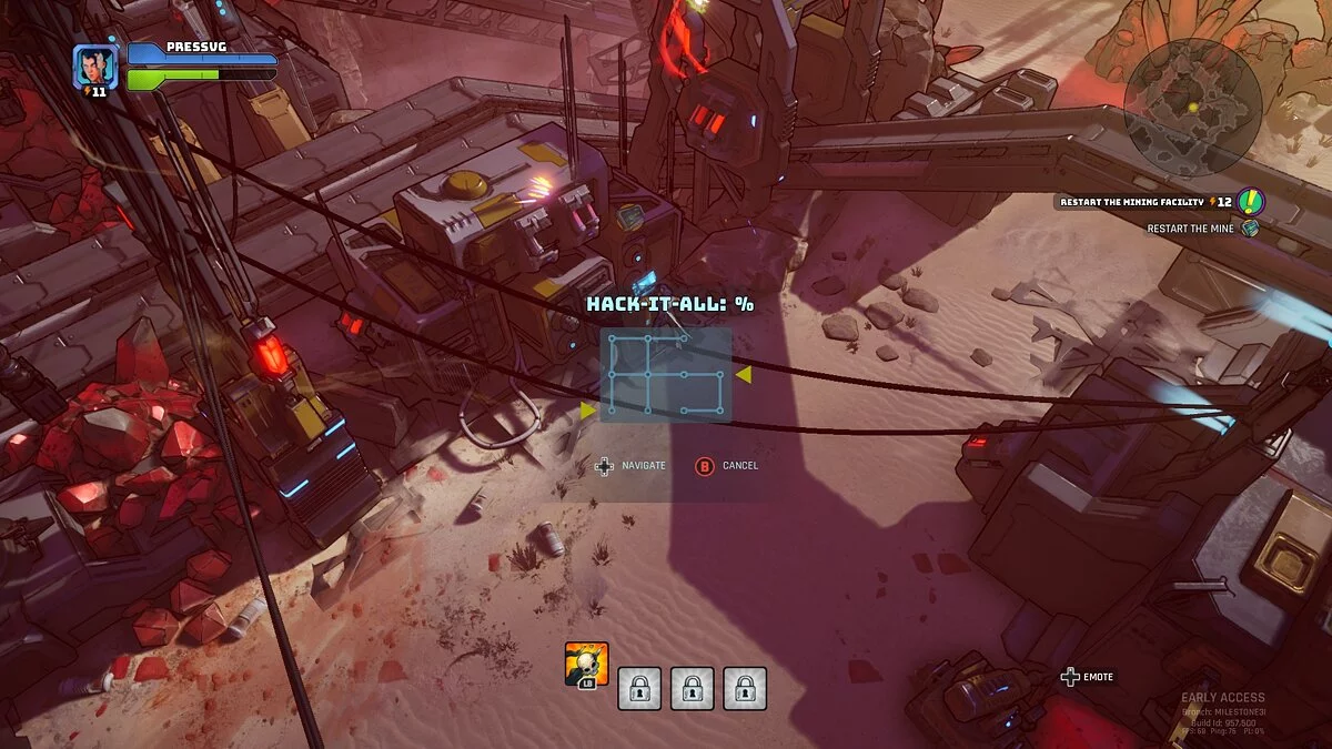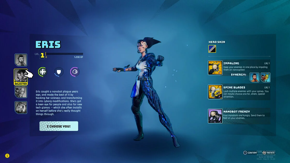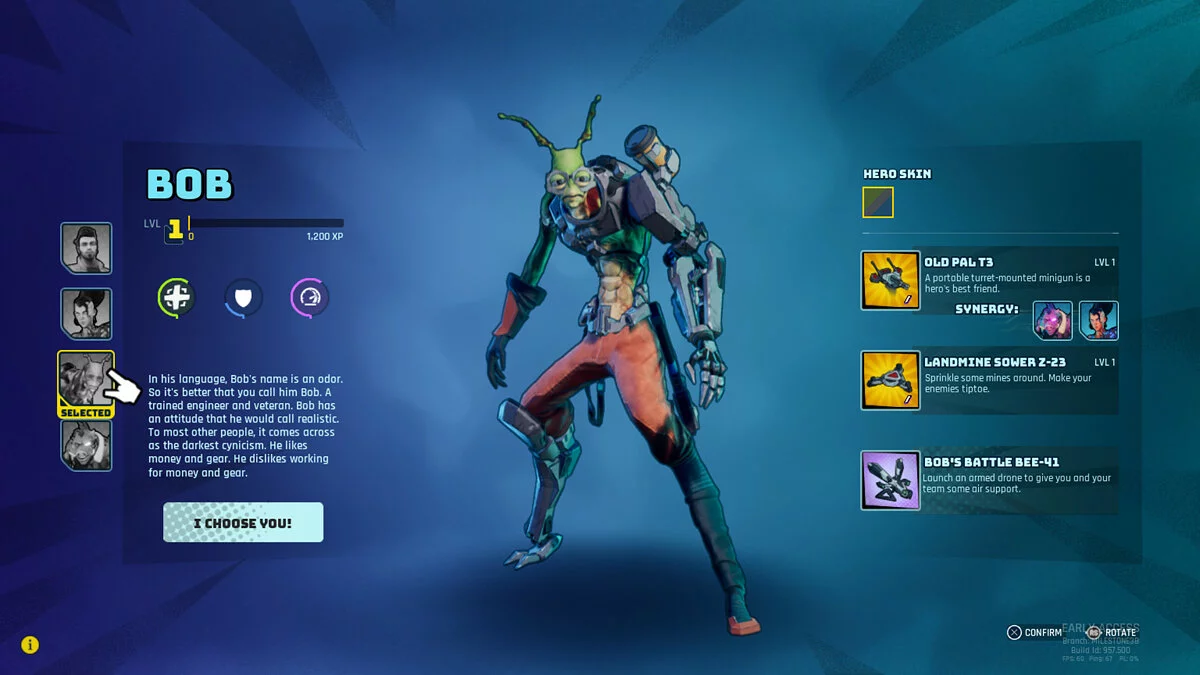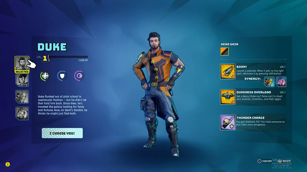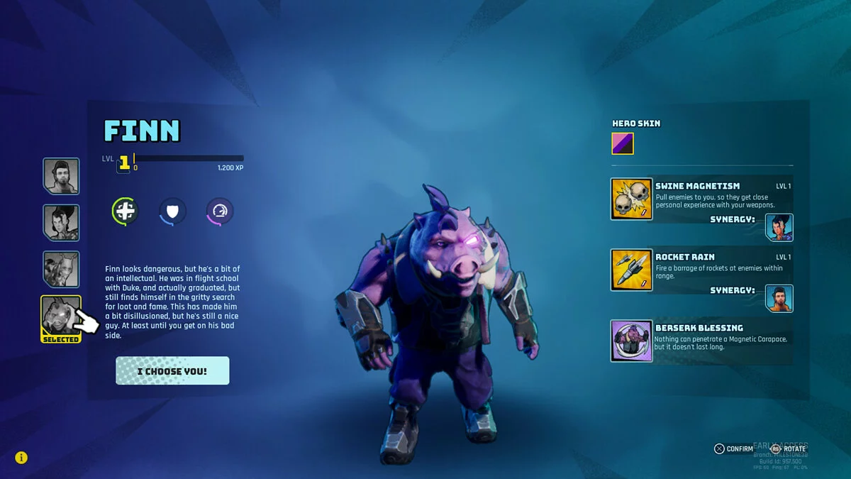 В теории способности героев должны создавать синергию. Эрис обездвиживает врагов, кабан Финн — притягивает, Дюк — пускает ракеты, Боб — ставит турель. Увы, проверить командную работу на деле мне не удалось. Пока в игру пустили только журналистов, и они не рвутся в бой. По хабу бегают игроки, но со мной на задание никто так и не отправился.