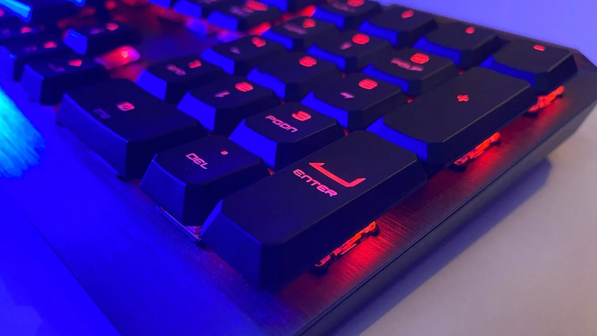 Установлены клавиши в форме восьмиугольника, под которыми находятся низкопрофильные механические переключатели Kailh с ходом до срабатывания 1.5 мм и общим ходом 3.0 мм. Укороченные переключатели позволяют чуть быстрее печатать и лучше реагировать в играх. Если до этого вы работали на мембранной клавиатуре, то будете удивлены. Звучат такие клавиши приятно, но для кого-то сначала такой звук может показаться звонким.