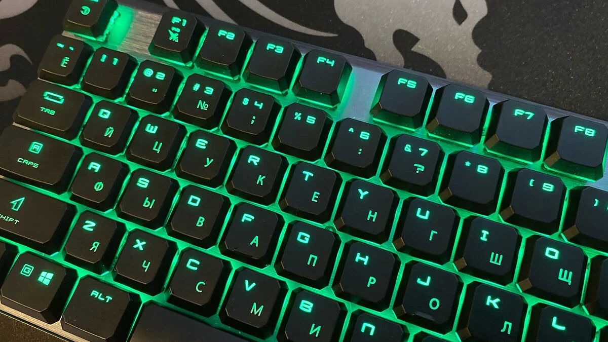 Девайс не был бы геймерским без RGB-подсветки. И Vigor GK50 Low Profile радует возможностями настройки, включая поклавишную подсветку с помощью MSI Dragon Center. Это приложение позволило нам создать иллюминацию по душе и синхронизировать её с мышкой Clutch GM41 Lightweight.