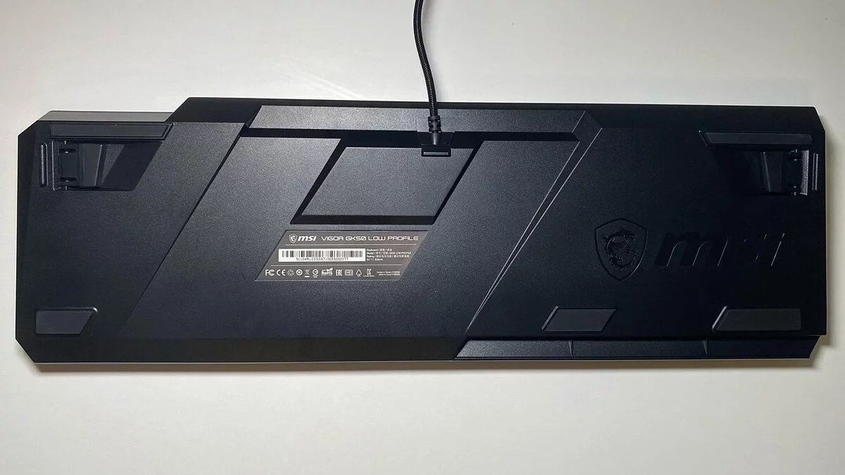 Девайс за всё время тестов ни разу не двинулся с места, пока мы сами его не переставляли. Всё благодаря пяти резиновым накладкам, расположенным по периметру. Для лучшей эргономики на Vigor GK50 Low Profile установлены две откидные ножки, позволяющие поднять клавиатуру под углом.