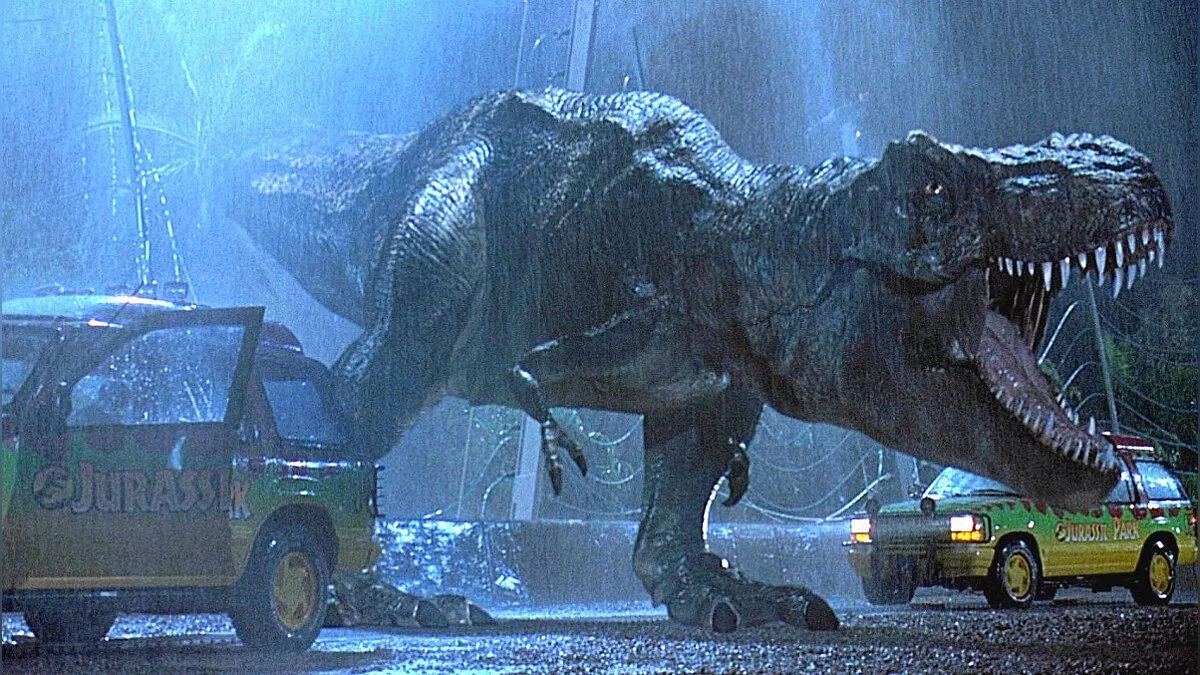 Для экранизации «Парка Юрского периода» Стивена Спилберга в 1993 году режиссер хотел использовать как можно больше практических эффектов. Если бы это зависело от Спилберга, в «Парке Юрского периода» вообще не было бы CGI, но это было бы слишком дорого. Спилберг даже предпочел использовать размытые стоп-кадры для более сложных сцен с динозаврами, но в итоге остановился на сочетании аниматроники и CGI. В классическом фильме 1993 года, который длится 127 минут, динозаврам уделено всего 15 минут экранного времени, и только в трети (или 5 минутах) из них динозавры были полностью сгенерированы компьютером.
