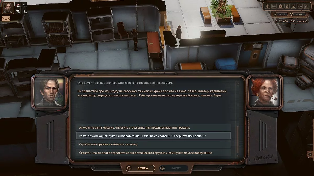 Единственная претензия — малое количество специализированных проверок. К примеру, при создании персонажа вы выбираете отдел, в котором будет служить герой. Кем он будет под Куполом: учёным, солдатом или руководителем? По факту это мало на что влияет — мне лишь пару раз довелось блеснуть своей принадлежностью к начальству. Да и будучи псиоником, я всего раза три прочёл в диалоге чувства собеседника. В остальном эти особенности бесполезны.