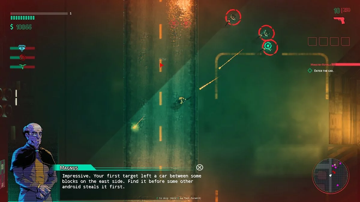 Единственное, что радует во время перемещения на тачке — это радио. Саундтрек в Glitchpunk потрясный: есть и приятные умиротворяющие мелодии, и крышесносный death-metal. Во время перестрелки с копами тоже включают бодрую электронику, которая неплохо качает.