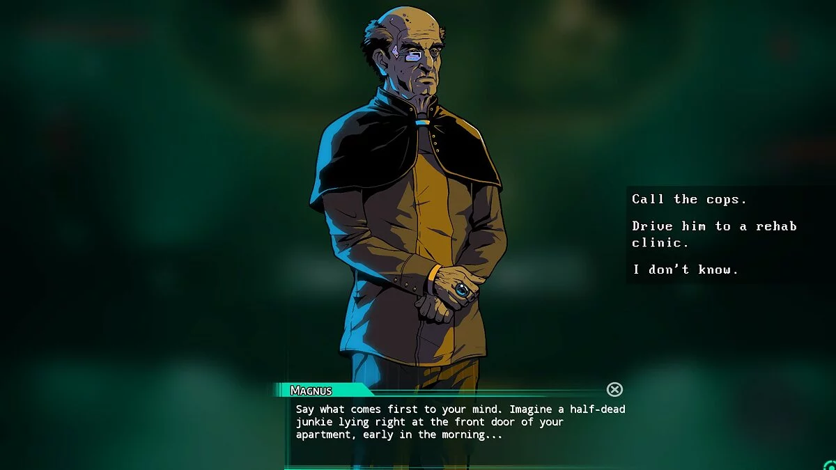 Главного героя встречает необычный гражданин. Он толкает одухотворённые речи, но больше смахивает на сектанта. Задав пару вопросов, он делает вывод, что вы — никто, и в Новой Балтии вам не место. Впрочем, респект всё-таки можно заслужить, если купить ствол и пристрелить трёх репликантов.