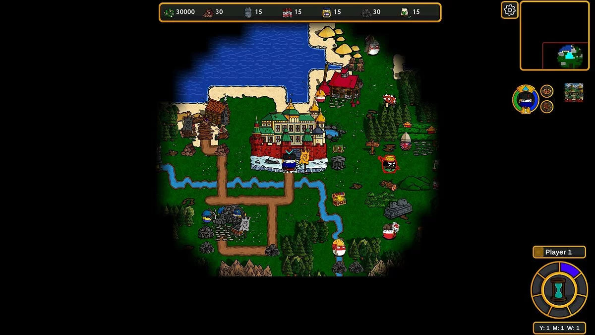 Туториал в подробностях расскажет, как управлять страношаром, но если вы рубились в «Героев меча и магии», почувствуете себя, как дома. Шар попадает на небольшую карту, на которой разбросаны ресурсы, крепости, производства и толпы врагов. Вы можете идти, куда глаза глядят, но не забывайте, что количество действий на каждый день ограничено. Исчерпали лимит? Жмите «закончить ход».