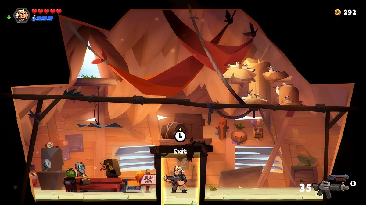 Несмотря на то, что Blast Brigade — платформер, играть на клавиатуре и мышке довольно удобно. В первую очередь благодаря тому, что можно прицеливаться и стрелять в движении. А вот к управлению с геймпада есть небольшие вопросы. На стандартной раскладке одновременно прыгать и прицельно стрелять не получается: эти действия отведены под большой палец правой руки. В настройках можно выбрать альтернативную схему, где эта проблема решена, пусть раскладка и не такая удобная.