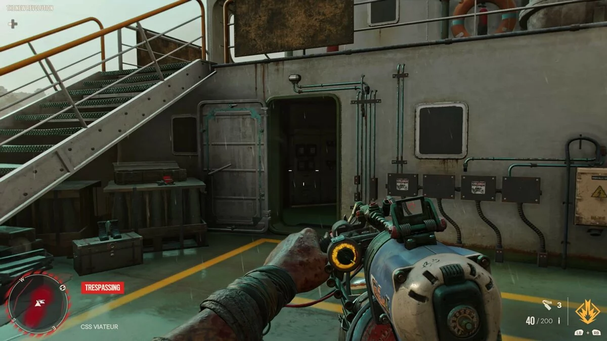 Стоит отметить, что лагерь революционеров — большой хаб, в котором камера меняет вид от первого лица на третье. В этом месте можно как следует разглядеть снаряжение, которое вы надели на Дани.