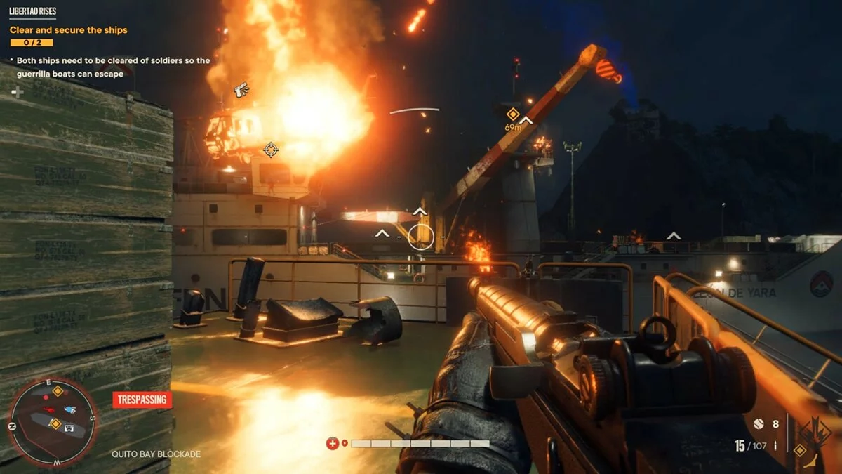 Завершающая миссия на стартовом островке отправляет Дани уничтожать военные корабли. Всего судна два: они огромны и забиты солдатами. Можно попытаться зачистить их по-тихому, но, скорее всего, вскоре вас заметят — тогда включится сирена, а на подмогу к врагу полетят вертолёты и прочая техника.
