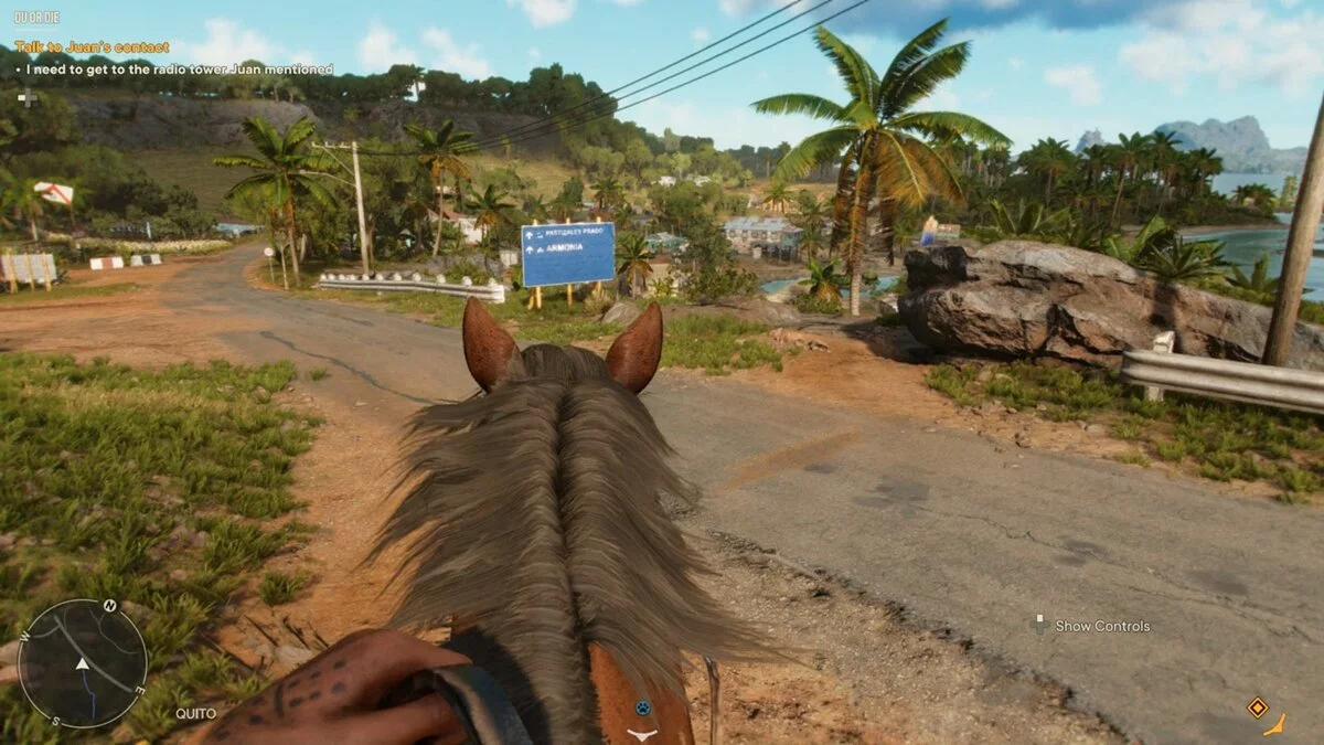 Перемещаться по карте Рохас может верхом на коне, которого можно кастомизировать, или за рулём автомобиля. Кататься как на животном, так и на тачке удобно.