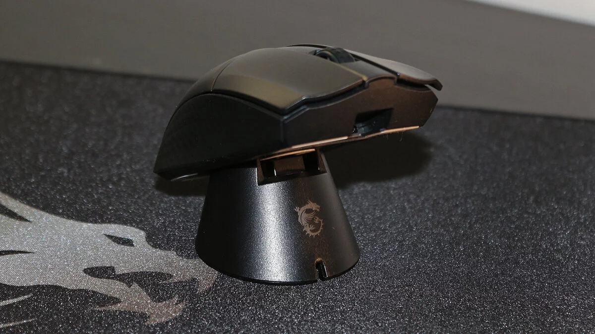 Избавившись от привязки к проводу, мышь совсем незначительно набрала вес — 74 г против 65 г у обычной версии. При этом USB-кабель идёт в комплекте, и его можно подключать как к мыши напрямую, так и к базе для зарядки. Беспроводной передатчик можно хранить и в самой мышке, и в док-станции.
