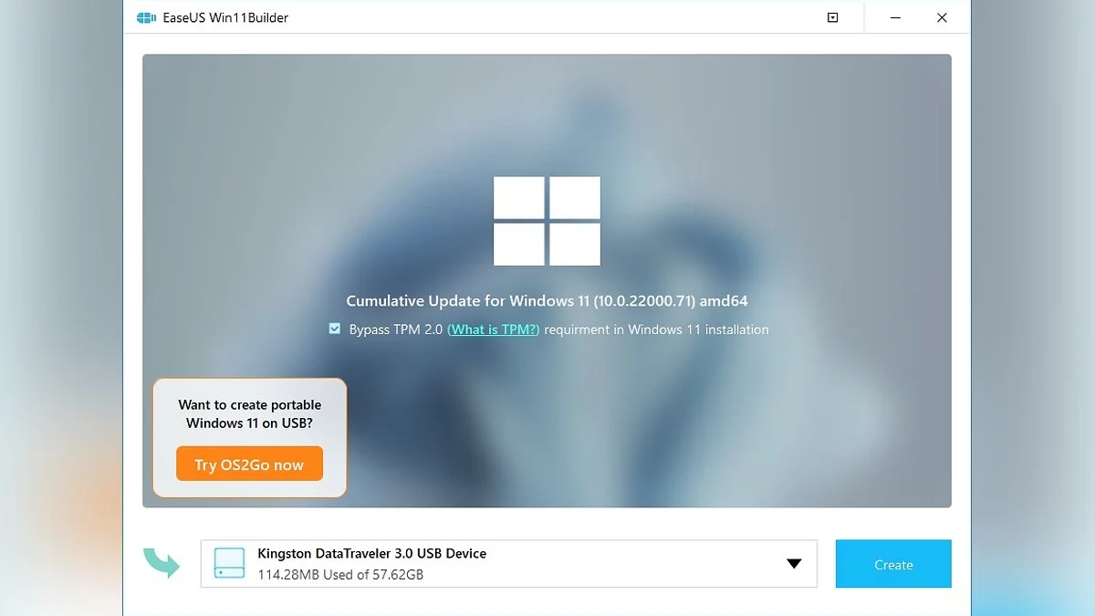 Сделать это можно при помощи EaseUS Win11builder. В отличие от других подобных программ, процесс полностью автоматизирован. Пользователю нужно лишь подготовить чистый USB-накопитель, остальное программа сделает сама.