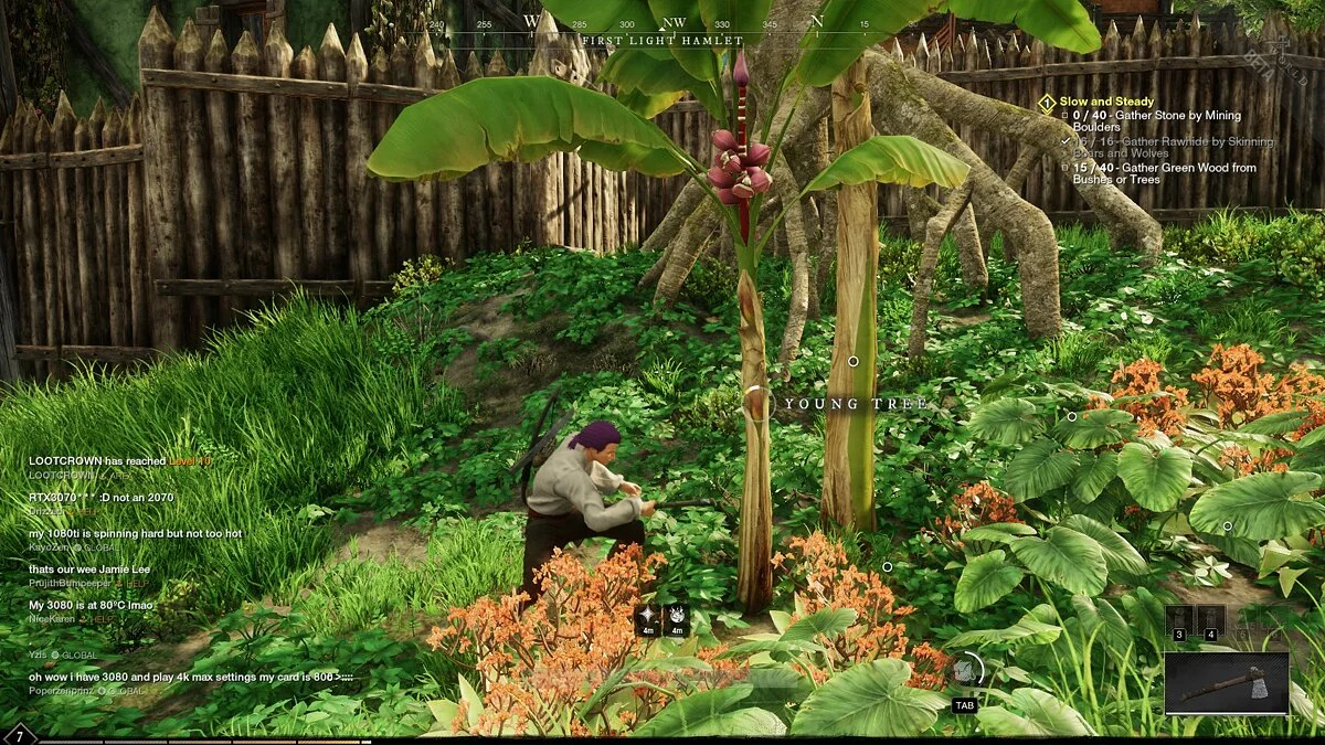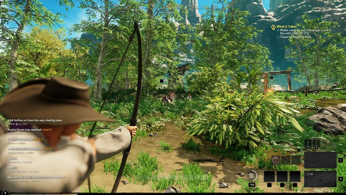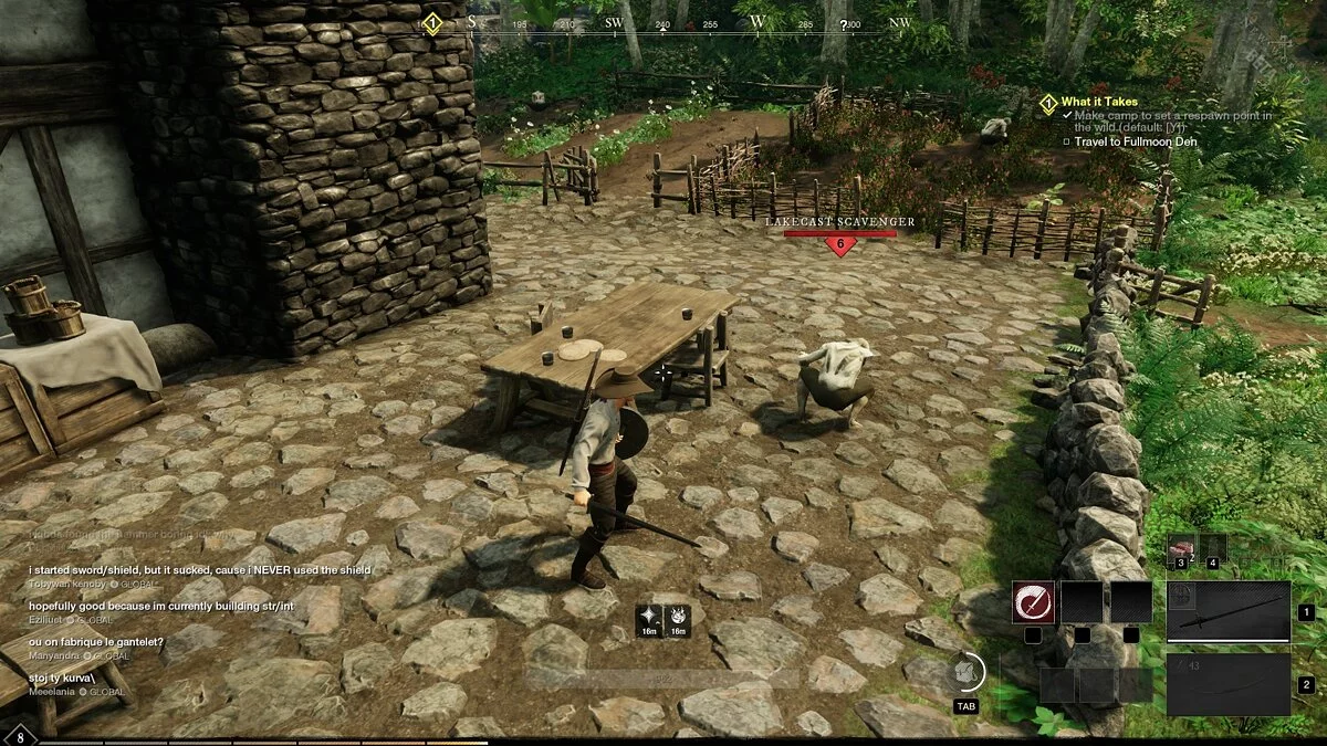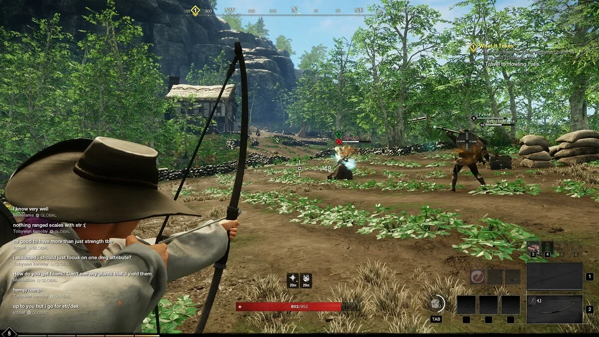 Добравшись до первого важного NPC, вы принимаете сюжетные квесты, которые напомнят, что New World — это ММО. Иди и подбери три документа. Иди и закинь в инвентарь три булыжника. Иди и убей пару кабанов. Иди и скрафти нужный инструмент.