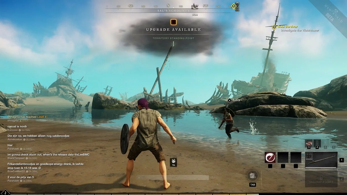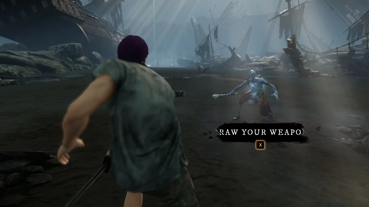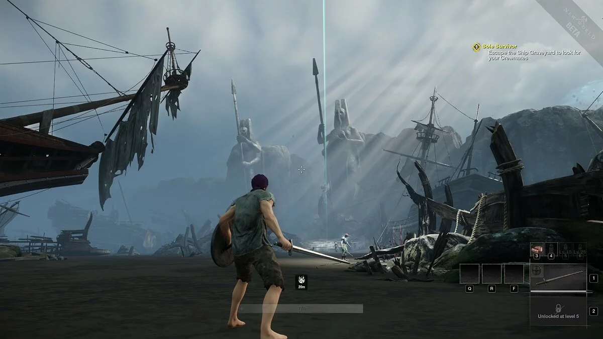 Начало New World впечатляет. Игру открывает красивая кат-сцена с отличными анимациями, графикой и озвучкой — смотреть её одно удовольствие. Затем герой приходит в себя на мрачном пляже, который превратился в кладбище кораблей. Не успев разобраться, что происходит, он вступает в зрелищную драку с монстром, которая поведает основы управления.