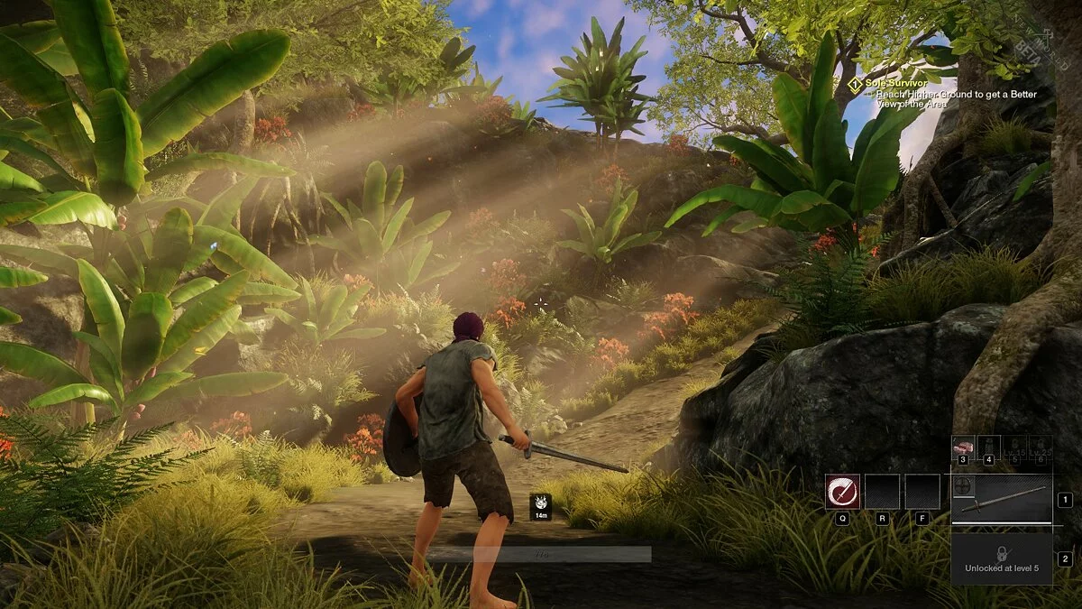 Помимо гринда и путешествий по миру герою придётся немало сражаться. У него есть слабый и сильный удары, блок и уворот. При этом нужно не только махать клинком и кувыркаться, но и следить за здоровьем и выносливостью — без этого не выжить.