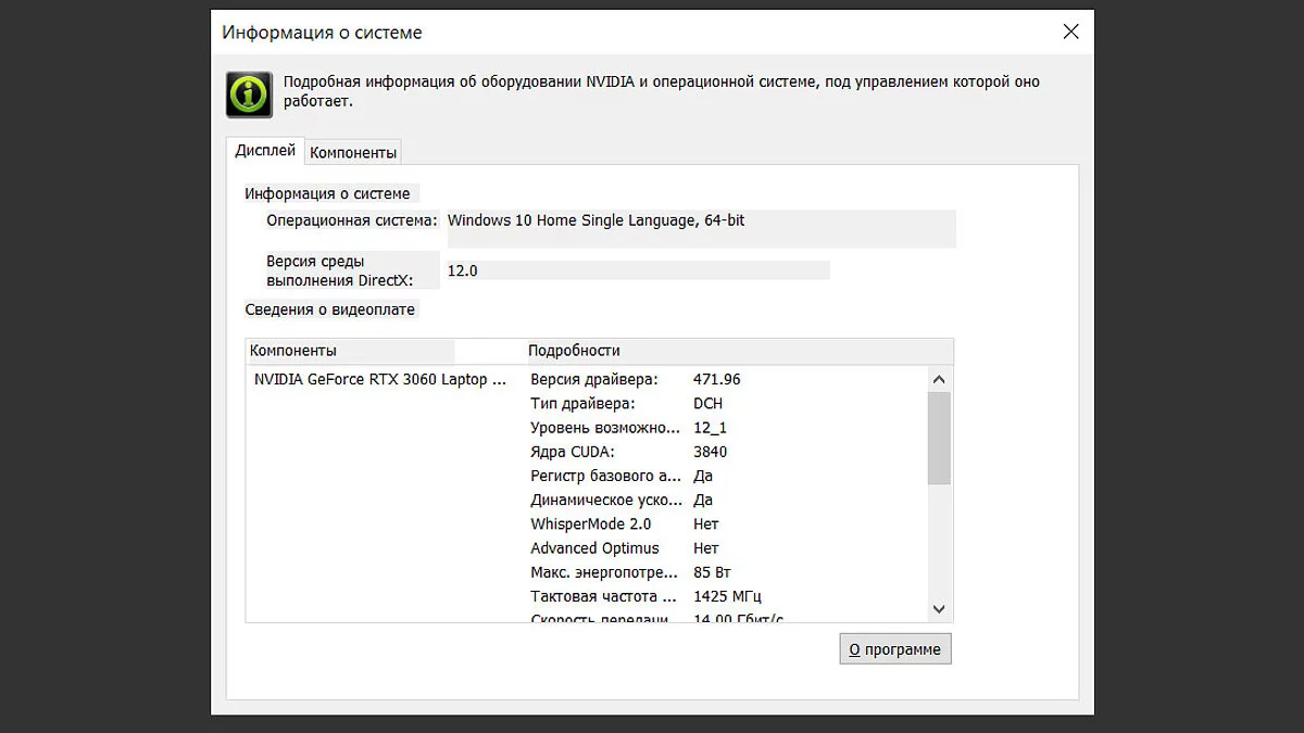 Видеокарта позволяет включать в совместимых играх трассировку лучей для продвинутых эффектов отражений и теней, а также технологию DLSS для увеличения производительности без потери четкости изображения. Как это работает на практике, мы проверим в игровых тестах. Также в связке процессора и видеокарты активна Resizable Bar, что позволяет более эффективно работать с видеопамятью. Процессор имеет прямой доступ сразу ко всему доступному объему. Кроме того, за перераспределение мощности между CPU и GPU отвечает Dynamic Boost 2.0, технология на базе ИИ. Это гарантирует, что процессорная или графическая мощность будет на максимуме в нужный момент в зависимости от типа нагрузки.