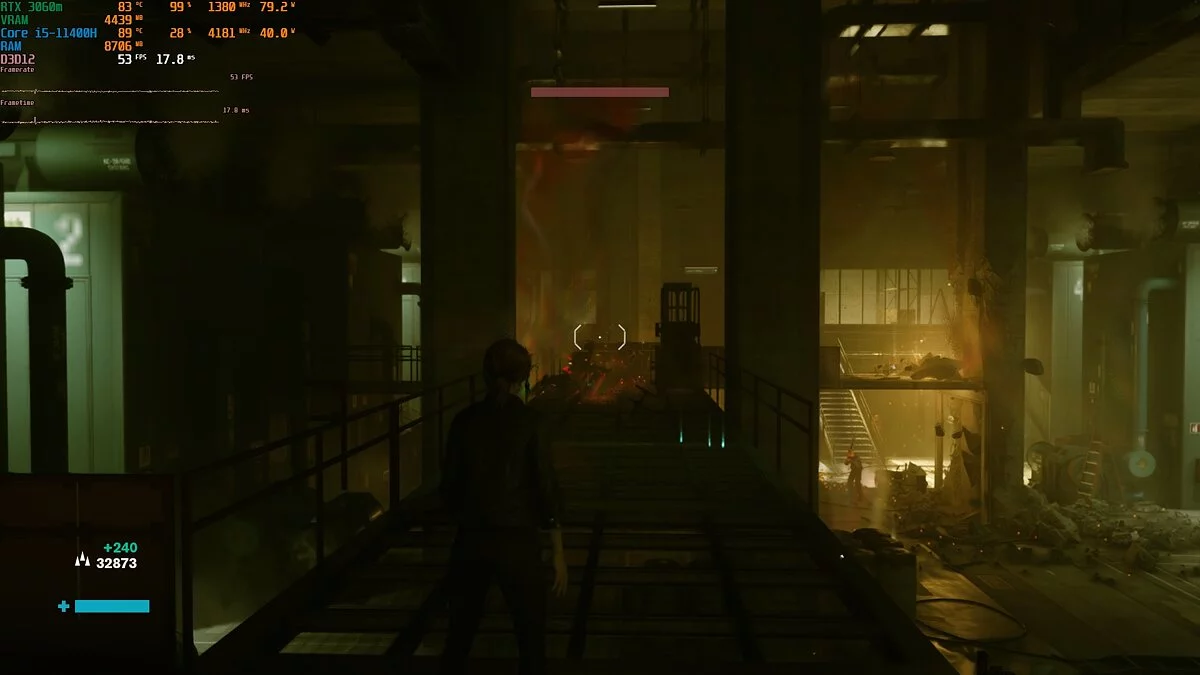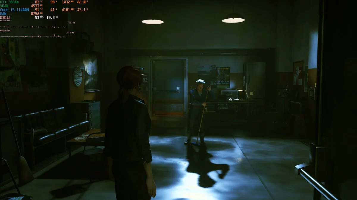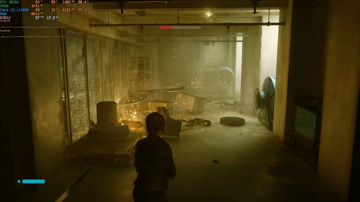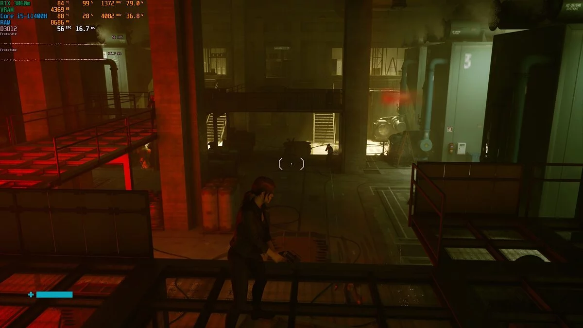 В Control можно комфортно поиграть на максимальных настройках графики и трассировки лучей. Разрешение экрана 1080p (разрешение рендеринга 720p с DLSS). Игра выдает более 60 кадров в секунду с просадками до 50 в тяжелых сценах (например, зеркальный коридор около аппаратной АЭК).