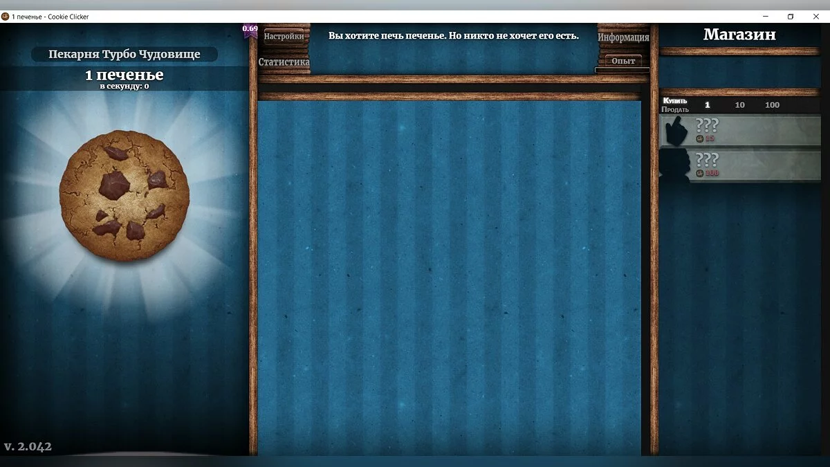 Прохладным осенним вечером я установил игру и решил на минутку в неё заглянуть — чисто узнать, о чём она. Меня встретили простенькая картинка, милый саундтрек и одинокое печенье. «Развлечение на пять минут», — подумал я, навёл мышь на кондитерское изделие и начал кликать.