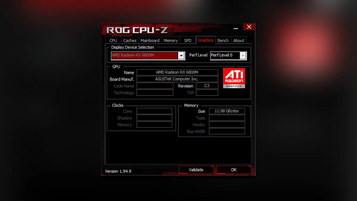 Видеокарта построена на базе чипа Navi 22 и имеет 40 RT-ядер, 2560 шейдерных процессоров, 160 текстурных блоков и 64 блока растеризации. Установлено 12 гигабайт памяти GDDR6 со 192-битной шиной. Производителем ноутбука заявлены следующие частоты в играх: до 2300 МГц, а в режиме Turbo — 2600 МГц (с технологией SmartShift). По техническим параметрам карта идентична десктопной версии Radeon RX 6700 XT. Ближайшая для сравнения карта от NVIDIA — десктопная GeForce RTX 3060 Ti или мобильная RTX 3070. Как видеокарта покажет себя на практике мы проверим в игровых тестах.