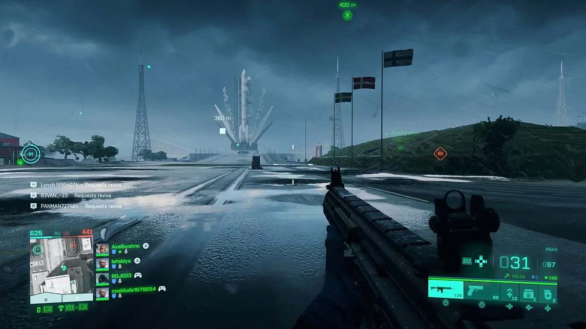 Впрочем, однозначные достоинства у карты тоже есть. Битва проходит при космодроме, и одна из точек для захвата находится у ракеты. В какой-то момент она взлетает в небеса, заполнив местность густым дымом, — зрелище впечатляющее.