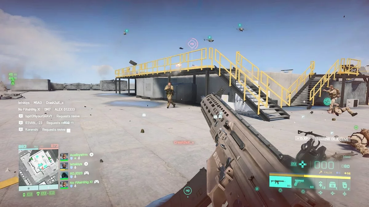 Увы, в остальном геймплей Battlefield 2042 подвергся даунгрейду по сравнению с противоречивой Battlefield 5. Взять хотя бы анимации. В прошлой части бойцы умели реалистично лежать на спине с пушкой на взводе, эффектно добивали врагов в ближнем бою, поднимали подбитых бойцов за руку после оказания помощи. Из новинки эти и многие другие анимации попросту удалили.