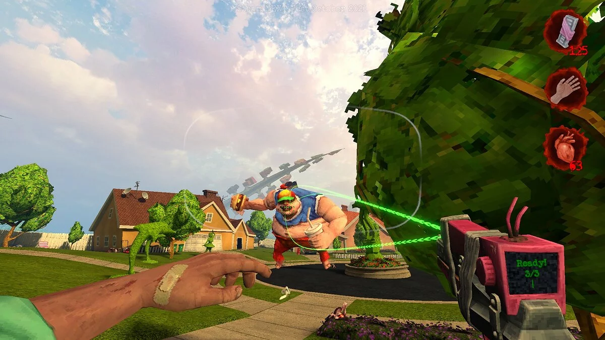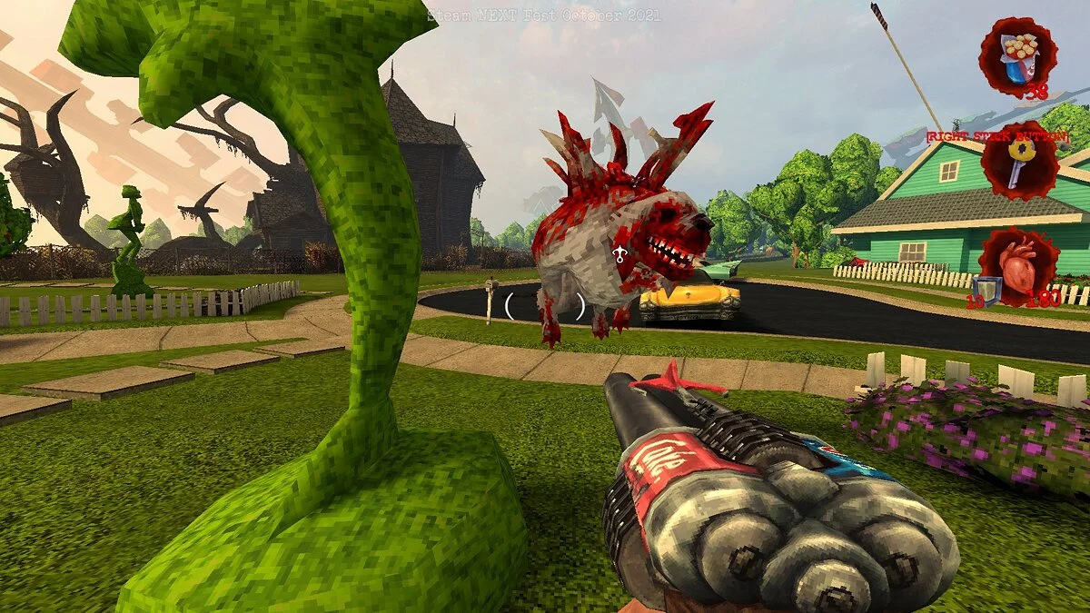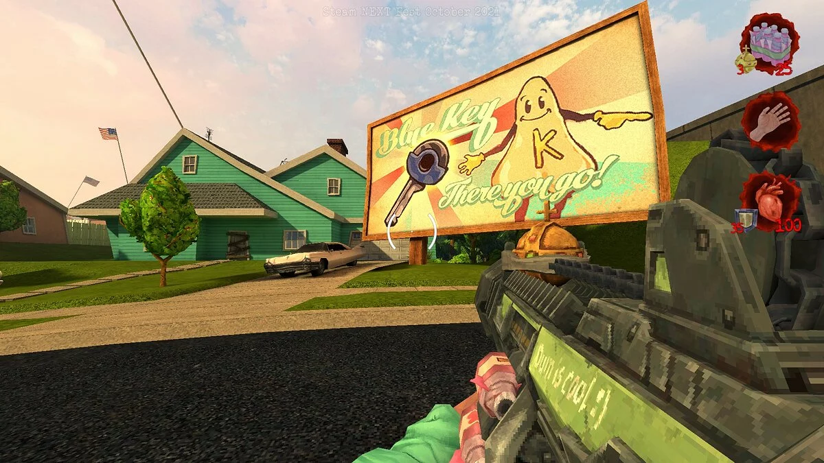 Подобное однообразие не идёт Brain Damaged на пользу. Одинаковые дома, три внешности для мирных NPC, четыре типа врагов — этого мало. Есть ощущение, что в Postal 2 разнообразия было на порядок больше, и ассеты повторялись не так часто.