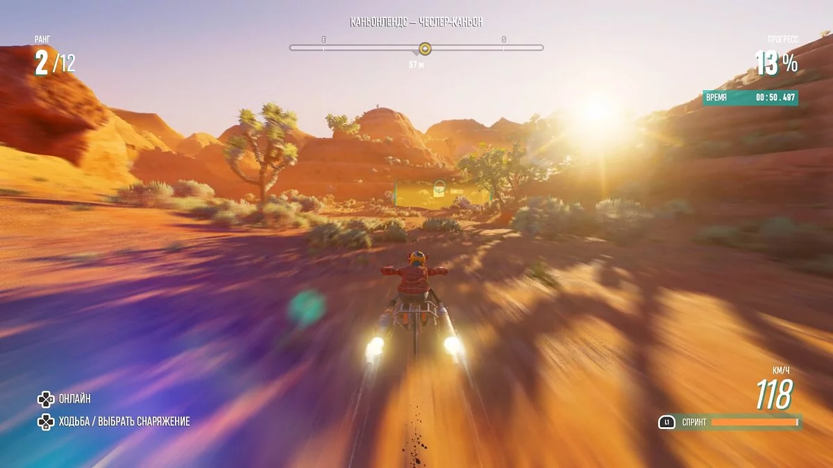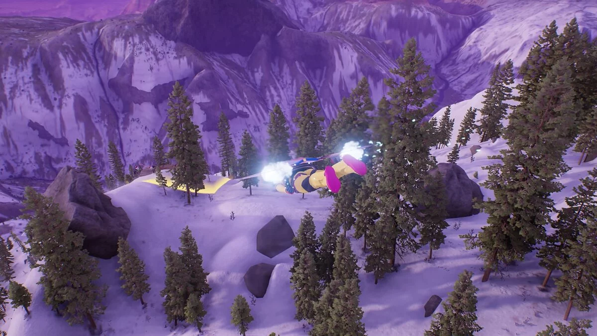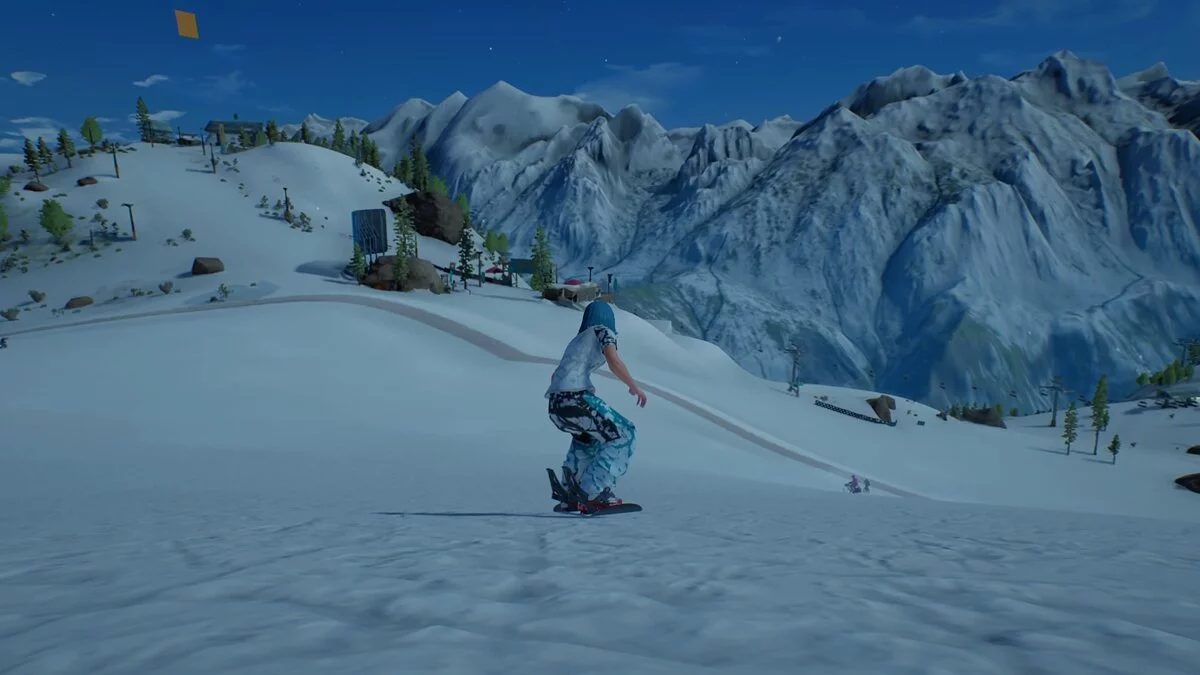 Фишка в том, что геймплей полон драйва. На трассах множество стремительных спусков, трамплинов и необычных условий. Высокие скорости ощущаются даже со стартовой экипировкой — особенно, если включить вид от первого лица. Управление удобное и аркадное: поворачивает райдер стремительно, вписываясь даже в самый резкий поворот, а трюки сами докручиваются при приземлении.