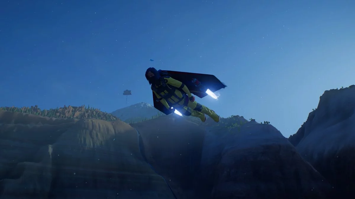 А ещё каждая дисциплина ощущается по-разному. К примеру, во время полёта в вингсьюте важно держаться поближе к земле — это приносит очки. Эта механика заставляет рисковать и постоянно держит в напряжении.