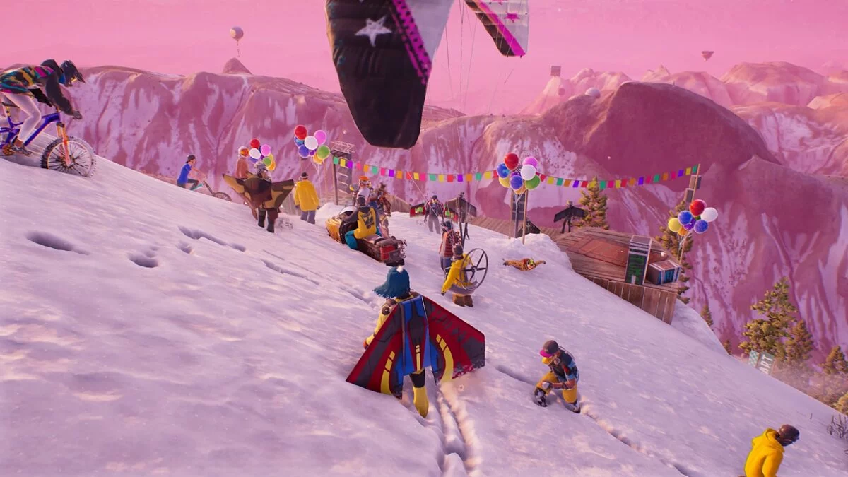 Речь о масштабных событиях, которые периодически появляются на карте и собирают 64 гонщика. Толпе предстоит прокатиться по трём трассам со сменяющимися дисциплинами. Райдеры могут начать заезд на лыжах, затем пересесть на велики, а финишную черту пересечь с реактивным ранцем за спиной.