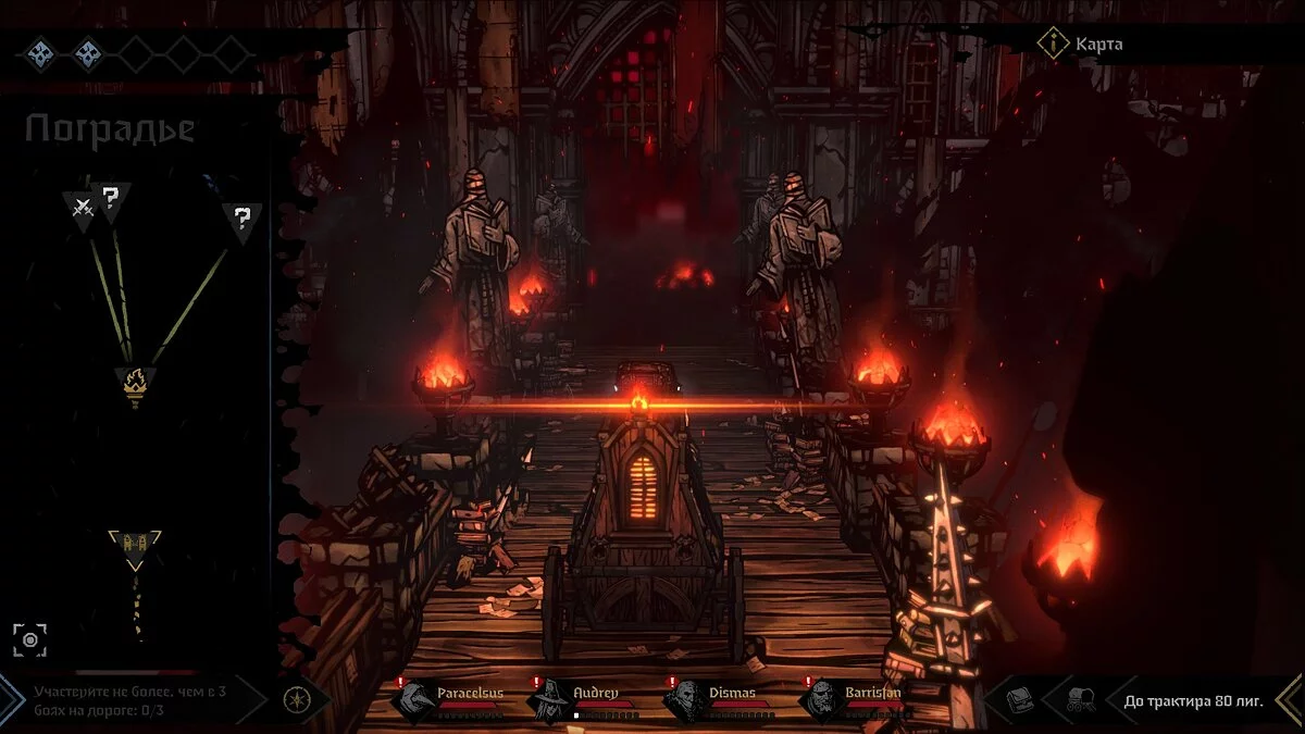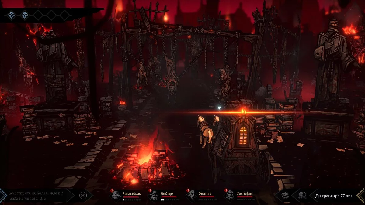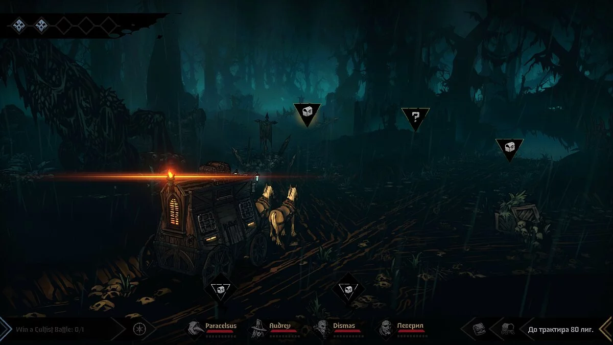 Повозка тащит героев вперёд, а геймеру предстоит выбирать дороги. Один путь ведёт к святилищу, где персонаж обретёт новый навык, другой — к сокровищу с ценным лутом, третий — к группе беженцев, помощь которым повысит огонёк надежды.