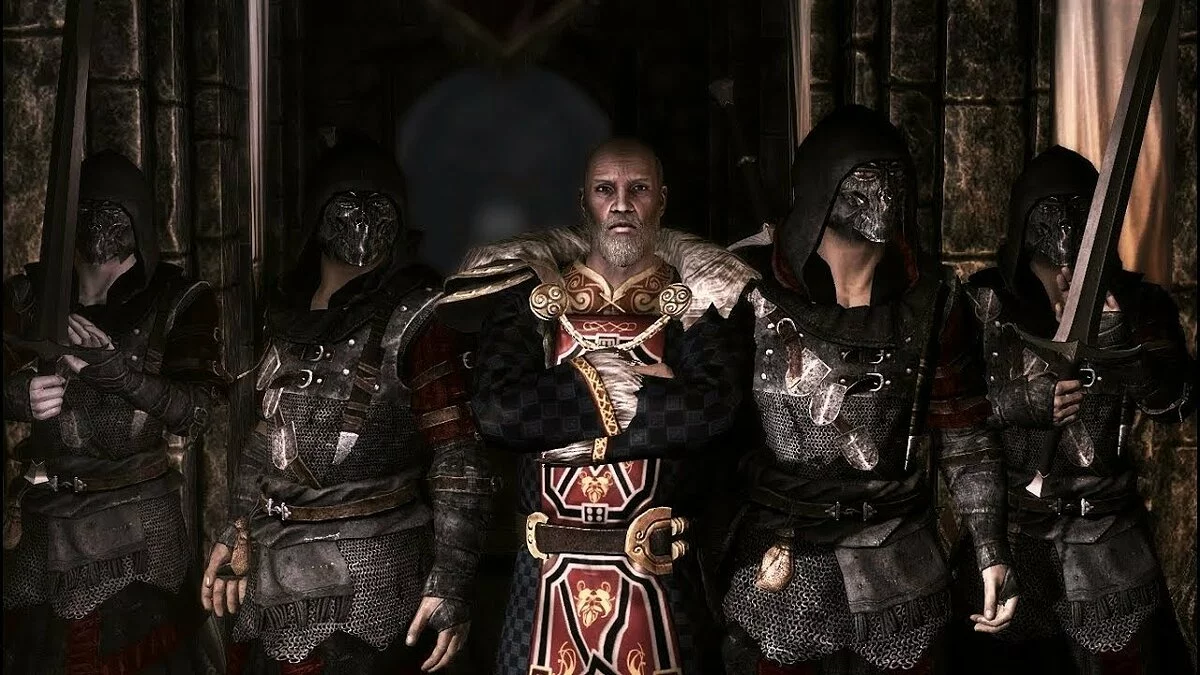 Однажды, уснув в тёплой кровати, Довакин приходил в себя в жутком сарае. Перед ним на коленях стояли три бедолаги в капюшонах смертников, а рядом с ними гордо восседала Астрид, лидер Тёмного братства.