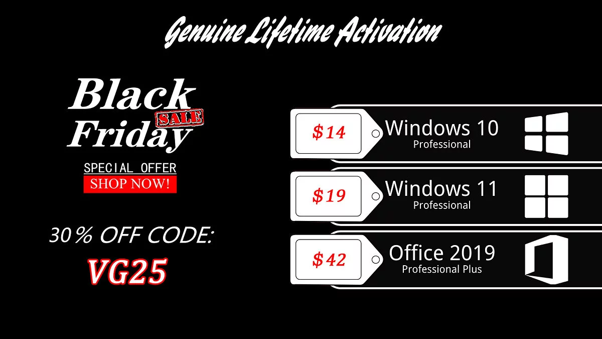 Распродажа в честь Черной пятницы со скидками до 92% на Windows 10 и Windows 11 с пожизненной лицензией, а также Office по промокоду VG25: