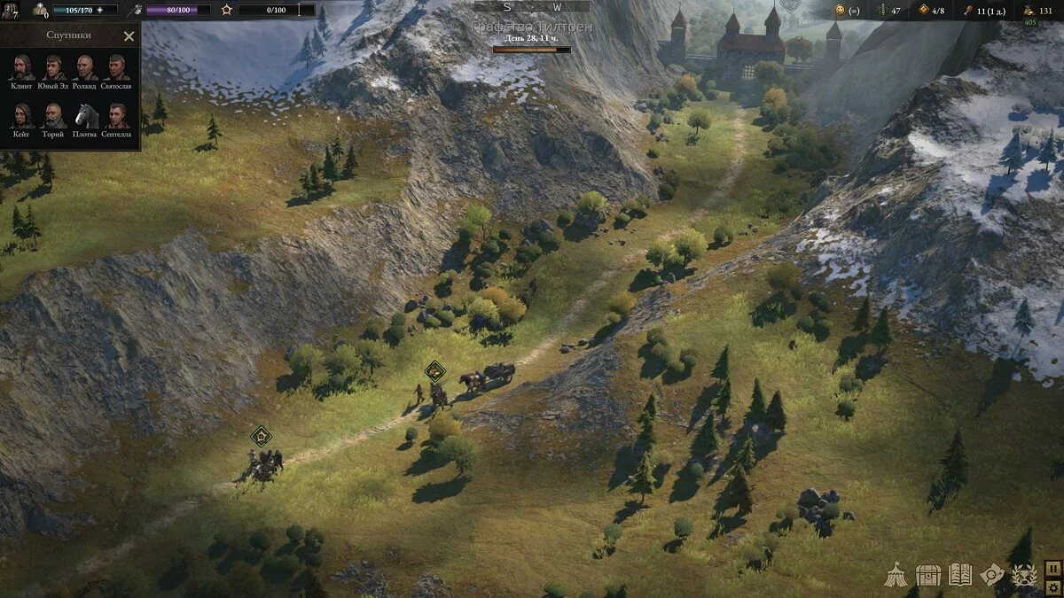 Отряд, как и NPC вроде торговцев, стражников и врагов, путешествует по миру в реальном времени. Дни здесь охотно сменяют ночи, волки круглые сутки бродят по лесам, а города никогда не спят.