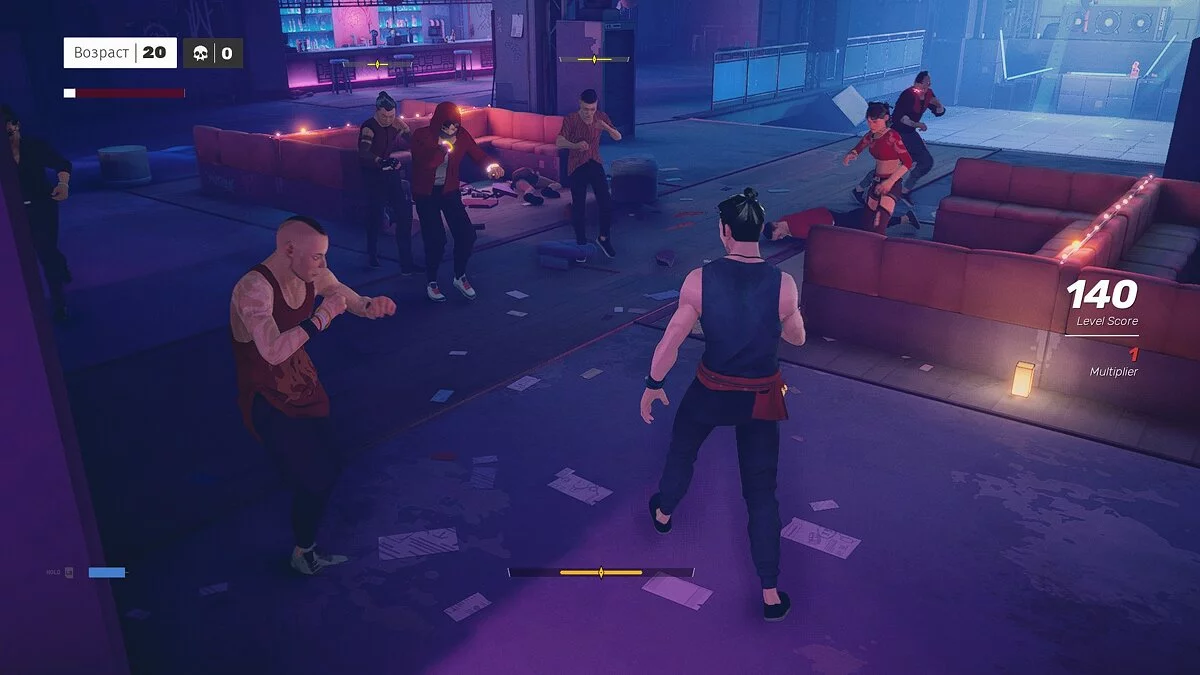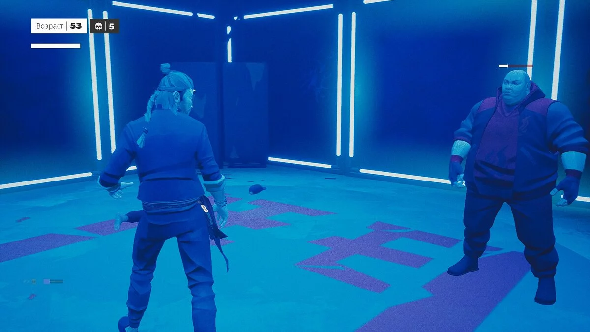 А ведь помимо рядовых противников Sifu подкидывает неприятелей покруче. Например, дама, которая пригласит биться на танцполе, удивит интересными приёмами и заставит понервничать. Первое столкновение с парой сторожащих дверь амбалов тоже вынудит сменить тактику — лезть на рожон нельзя, иначе героя схватят и быстро забьют насмерть. Чего уж говорить о боссе, который во время первого забега не оставил мне ни единого шанса.