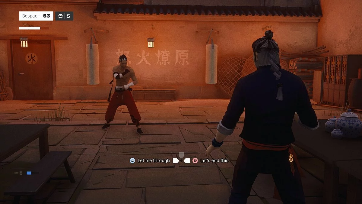 Увы, один уровень не позволяет полностью разобраться, как работает механика старения. Судя по всему, завершая вылазку, герой будет чинить амулет и возвращаться к 20-летнему возрасту. Всё-таки, если у персонажа будет один амулет на всё прохождение, большинство игроков просто не смогут добраться до финала Sifu.