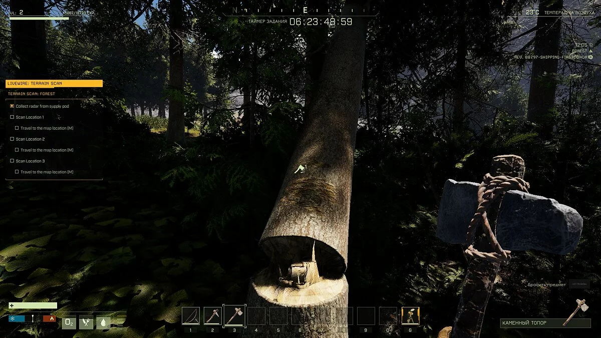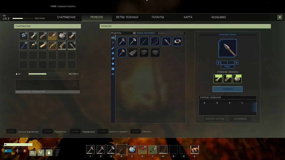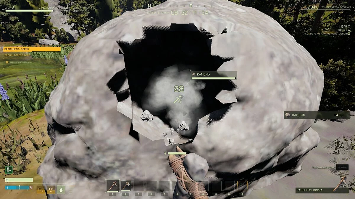 В остальном геймплей не оригинален — если рубились в другие «выживалки», почувствуете себя, как дома. Высадившись на планете, герой должен собирать всё, что видит, и повышать качество жизни. Из дерева и камней можно сделать инструменты, которые позволят добывать больше дерева и камней. Из волокон и палок стоит скрафтить охотничий лук. Из меха и кожи получаются неплохие спальники. Список практически бесконечен.