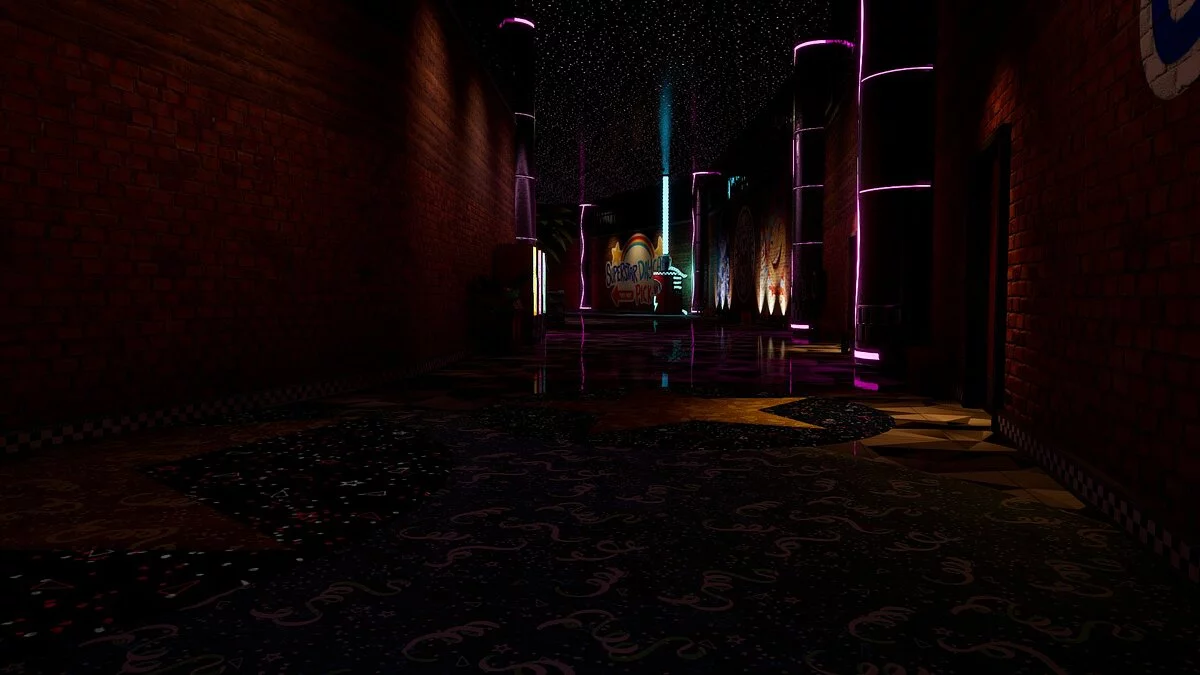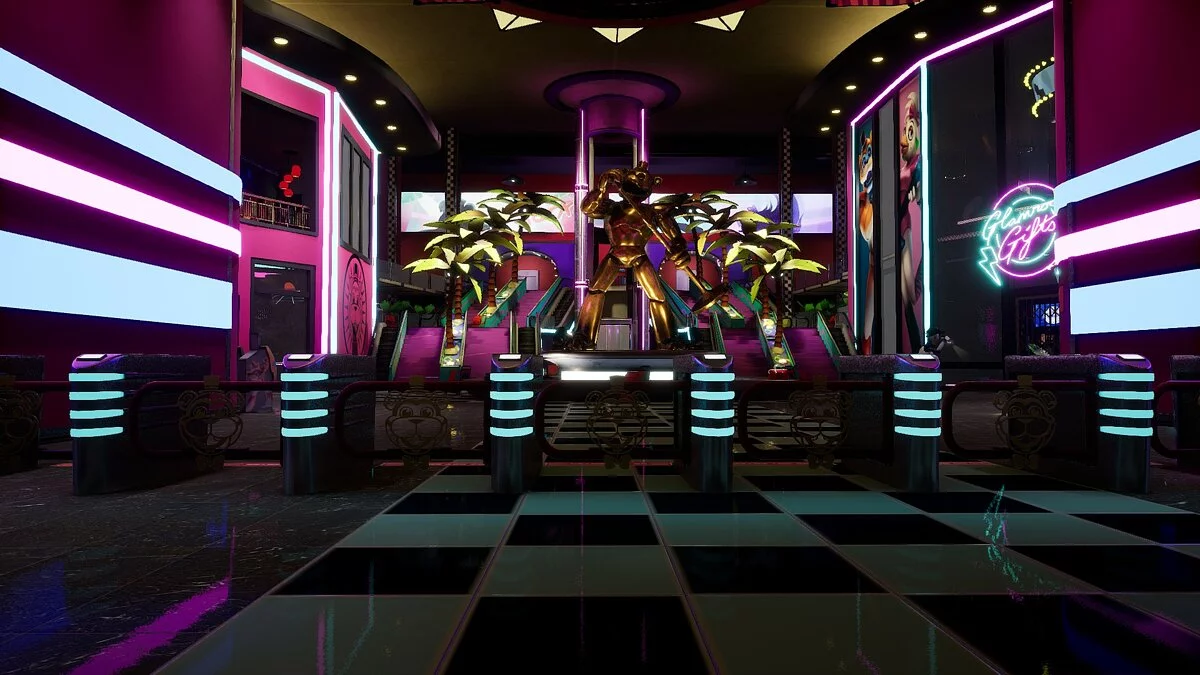 Добро пожаловать в «Мега-пиццаплекс Фредди Фазбера». Это огромный торговый центр, в котором есть отличные ресторанчики, крутая игровая комната, приятные магазины, а по центру стоит величественная статуя главной звезды Фредди. К слову, сам он вместе с группой уже выходит на сцену и готовится зажечь.