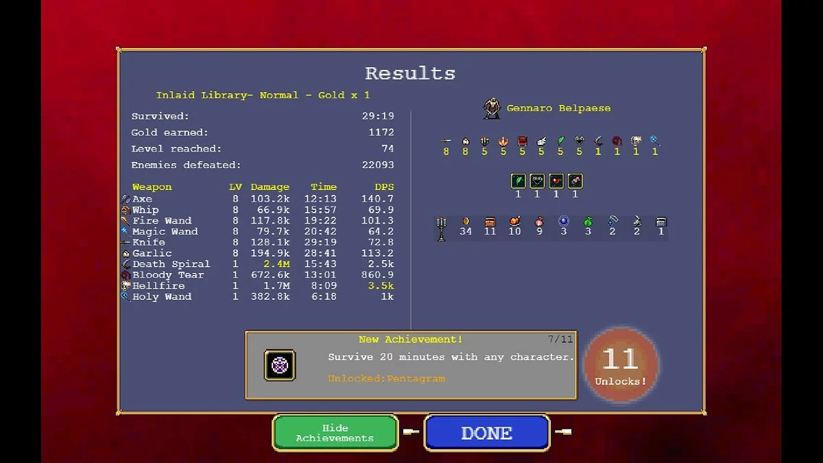 В итоге геймплей Vampire Survivors кажется до безобразия примитивным, но его хватает, чтобы увлечь. Сражения с нечистью неслабо затягивают — а ведь у игры есть и другие фишки.