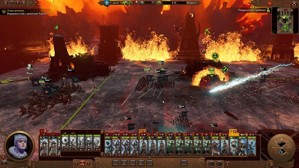 Также стоит отметить, что Warhammer 3 — самая масштабная часть серии. Геймеры ещё не видели столь огромной карты, которую делит сотня фракций. Чтобы заглянуть в самые дальние края, придётся потратить часов тридцать, не меньше.