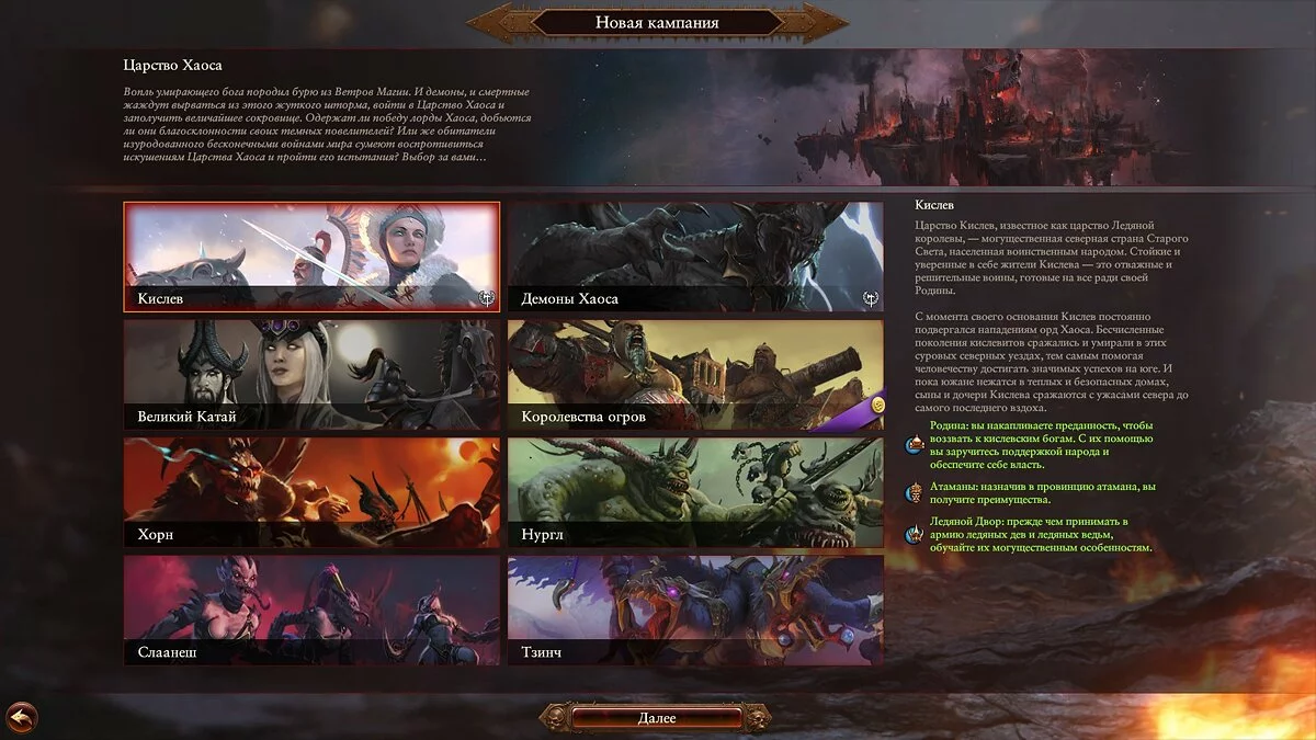 Стоит отметить, если царица вам не по душе, можете выбрать в качестве легендарного лорда её конкурента. У Кислева есть и третий секретный герой, но он открывается лишь после прохождения сюжетной кампании.