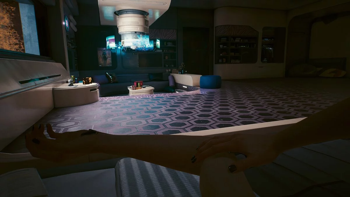 Внешность Ви теперь можно изменить дома у зеркала. При желании через домашний компьютер можно арендовать новую квартиру — плюс дизайн хаты в любой момент можно изменить. Если легли спать, есть шанс пробудиться рядом с возлюбленной. В магазинах появилась пара новых пушек. Карту можно фильтровать, оставляя на ней только нужные иконки. Во время игры за Сильверхенда в фоторежиме удастся сменить позу бунтаря.