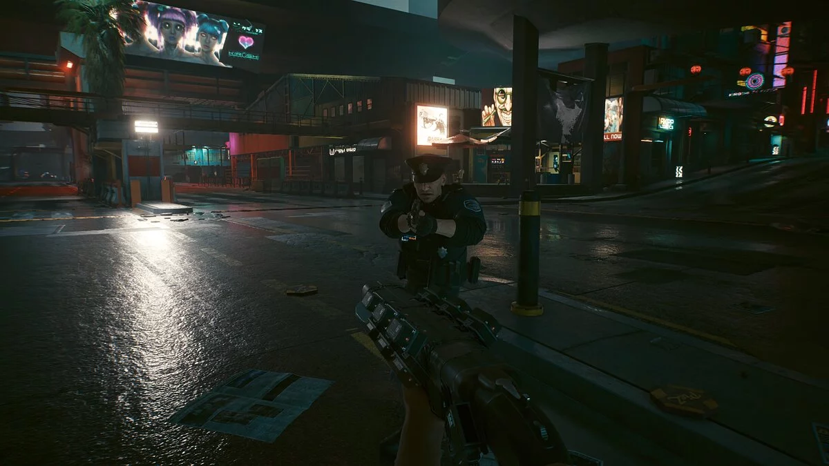 Враги тоже стали действовать чуть более вдумчиво и реже лезут под пули. Да и копы теперь спавнятся не прямо за спиной, а где-то в конце улицы. Издалека они бегут к Ви на своих двоих и вяло постреливают — гонять на тачках стражи правопорядка так и не научились.