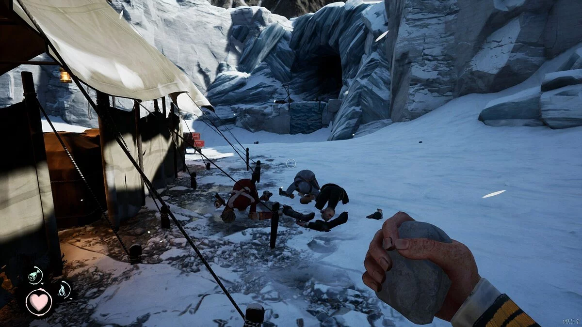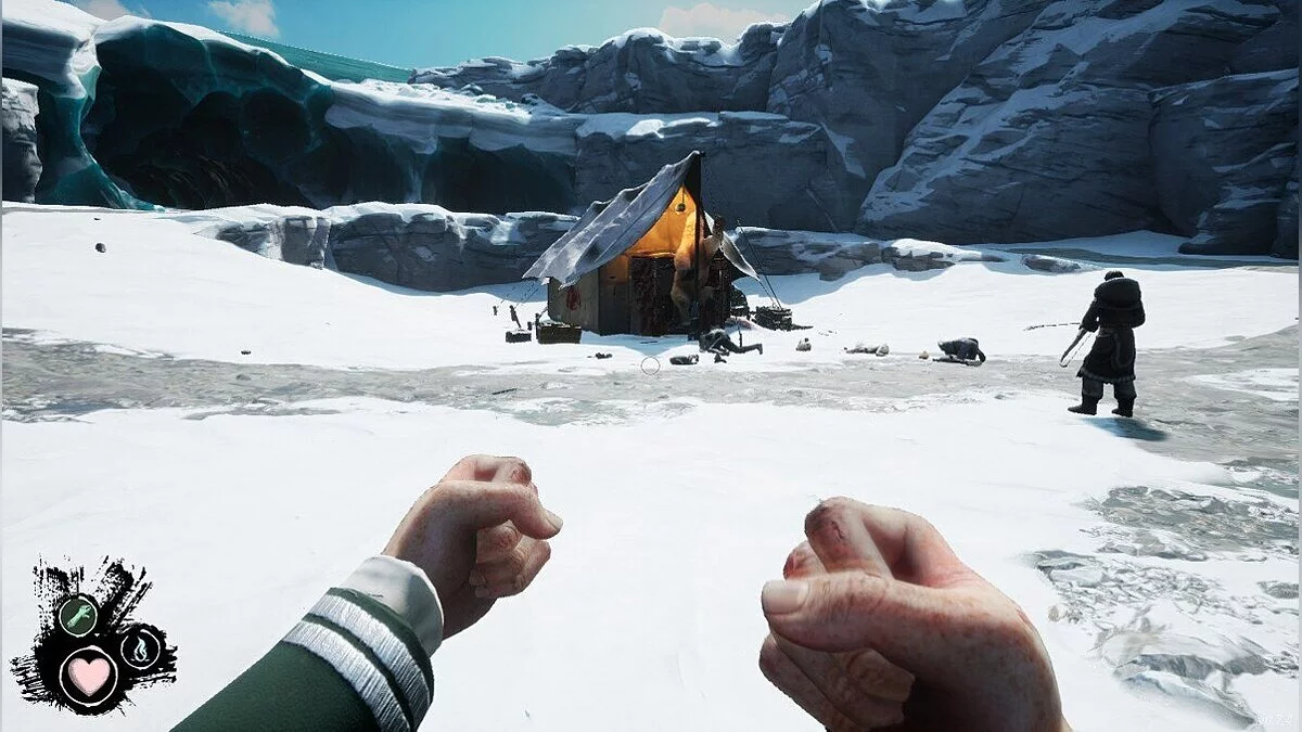 Вот мы и добрались до самого интересного — основного геймплея. У вашего героя есть три шкалы — здоровье, температура тела и голод. Тают они довольно быстро, поэтому времени на бездействие попросту нет. Холод куда более опасный враг, нежели предатели. Упали в воду — грозит обледенение. Не успели до заката добежать до убежища? Вот и обморожение. Плюс случаются метели и другие погодные неприятности.