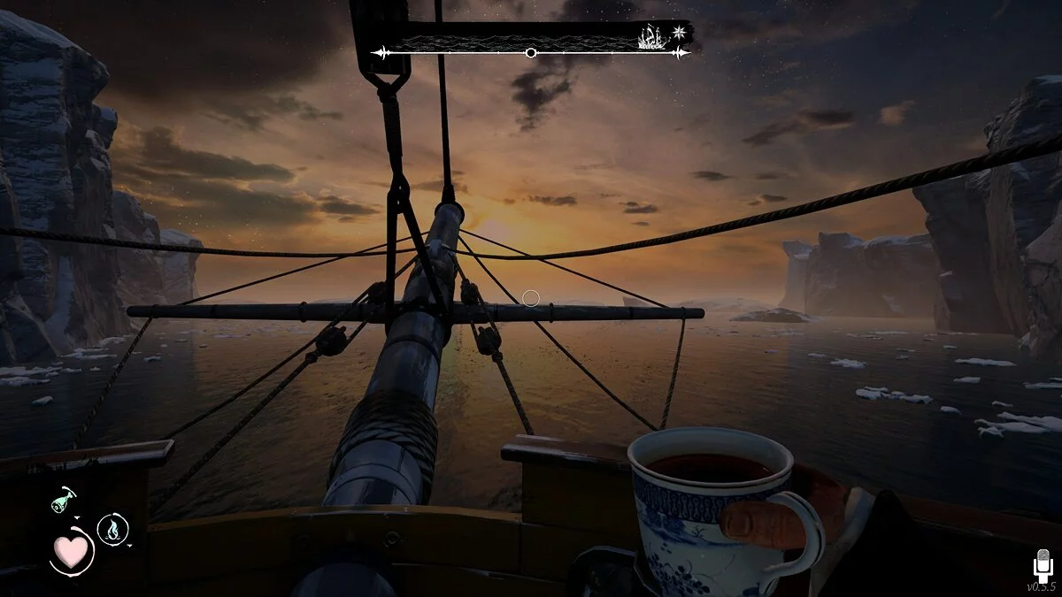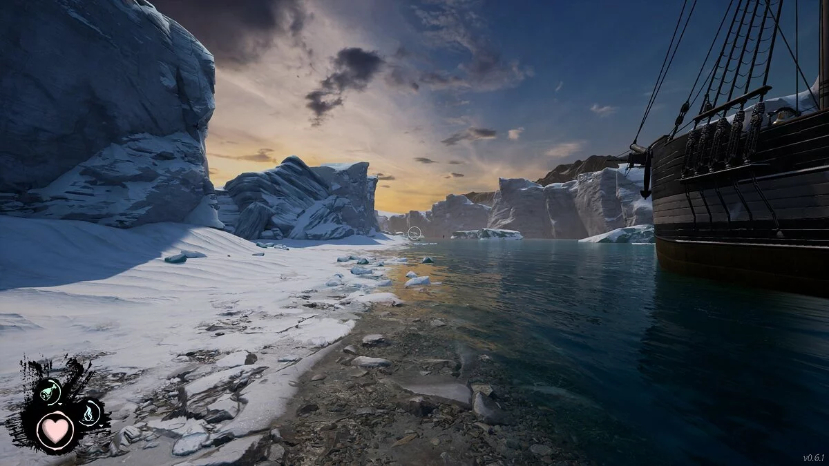 После этого корабль начинает медленно подплывать к берегам основного места действия. На самом судне множество отсеков и интерактивных предметов, которыми можно активно пользоваться. Ваша задача — собрать необходимое количество топлива и забросить его в паровой двигатель. Тут пригодится уголь, древесина и вообще всё, что горит. Также важно учесть, что кораблем нужно управлять при помощи штурвала, иначе есть риск загнать его в толщу льда.