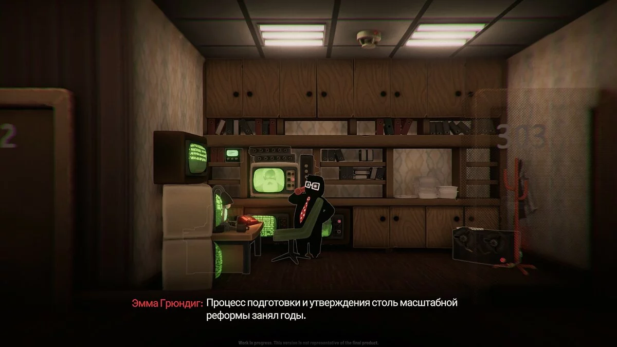 Когда Фрэнк проявит себя сознательным гражданином и выполнит множество сомнительных просьб, сможет вернуться на работу в Министерство. Там у него тоже будет ворох задач: выяснять политические взгляды коллег, узнавать их привычки и слабости, разносить почту и, конечно же, ставить камеры для слежки.