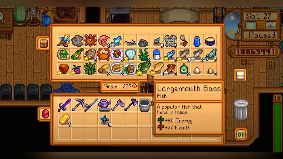 В оригинальной Stardew Valley максимальный объём инвентаря — 36 единиц. После установки модификации Bigger Backpack вы сможете увеличить его до 48 ячеек. Купить такой рюкзак можно у Пьера за 50 000 монет.