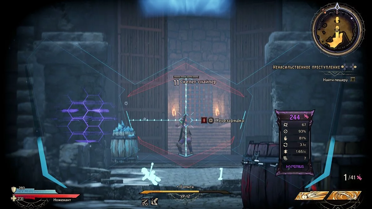 Если за Дитя могилы приходилось действовать аккуратно и частенько погибать, то Ножемант постоянно носился по арене и лихо расстреливал толпы врагов. Подобрав ствол, восстанавливающий HP при нанесении критов, он и вовсе стал нагибатором.