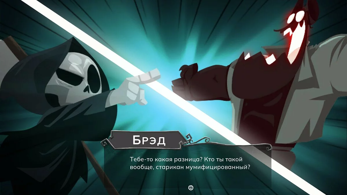 Фишка в том, что сюжет подан с юмором. Персонажи нередко достойно шутят, а художники талантливо поддерживают лёгкую атмосферу. Как минимум, пару раз Have a Nice Death точно заставит игрока растянуться в улыбке.
