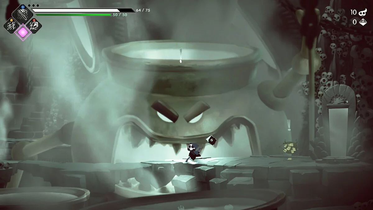 Геймплейно Have a Nice Death мало чем отличается от Dead Cells. Смерть начинает долгий путь в личном кабинете и отправляется за головами неприятелей. При этом движется она от босса к боссу.