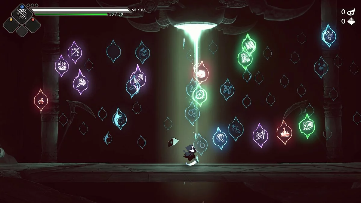 Единственное послабление в том, что после неудачной попытки Смерть получает золотые слитки. Их можно потратить на разблокировку нового оружия, которое может выпасть во время прохождение, и повышение его качества. Впрочем, геймплей это особо не упрощает, так как нет гарантии, что нужный шмот выпадет в ближайшее время.